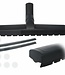 Met rubberen wieltjes. Voorzien van een setje rubberstrips en een setje borstels voor nat en droog zuigen.
